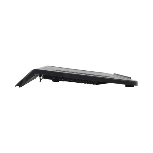 یکی از ویژگی های کاربردی کول پد Cooler Master Notepal L1 طراحی فوق باریک و وزن کم آن است که حمل و جابجایی آن در کنار لپ تاپ را بسیار آسان کرده است. به طور دقیق تر باید گفت که این کول پد در ابعاد 390 x 310 x 20-47 میلی متر و وزن 720 گرم عرضه شده و فضای کمی را اشغال می کند. همچنین باید به این نکته اشاره کنیم که پایه خنک کننده کولر مستر مدل Notepal L1 به صورت شیب دار طراحی شده تا در هنگام قرار دادن لپ تاپ بر روی آن، بهترین زاویه دید را نسبت به صفحه نمایش داشته باشید. همچنین این نوع طراحی به شما برای تایپ آسان تر هم کمک زیادی می کند. این کول پد دارای بدنه ای پلاستیکی و توری فلزی است و در قسمت پایینی آن یک برآمدگی پلاستیکی دیده می شود. این برآمدگی از افتادن لپ تاپ از روی کول پد در اثر سر خوردن یا لغزیدن جلوگیری می کند. در مجموع با توجه به قیمت پایه خنک کننده لپ تاپ کولر مستر Notepal L1، کیفیت ساخت و طراحی آن را می توان کاملاً مطلوب ارزیابی کرد.