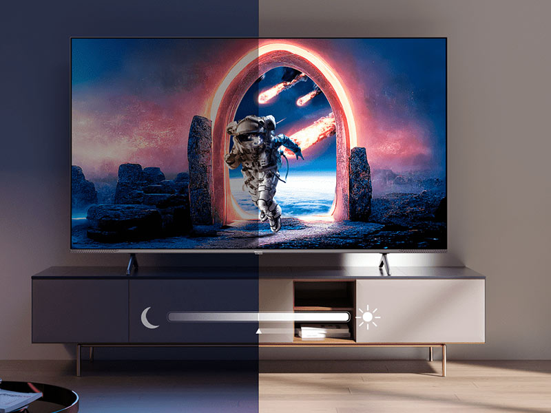 تلویزیون Hisense E7KQ Pro از فناوری ارتقای کیفیت تصویر به UHD برخوردار است. این فناوری باعث می شود تا رزولوشن سیگنال های ورودی به 4K ارتقا داده شوند و تصاویر در هر حالتی با بهترین کیفیت ممکن به نمایش گذاشته شوند. همچنین تلویزیون جدید هایسنس 90 درصد از محدوده رنگ غنی DCI-P3 را پوشش می دهد و رنگ هایی طبیعی، جذاب و شاداب را به ارمغان می آورد.