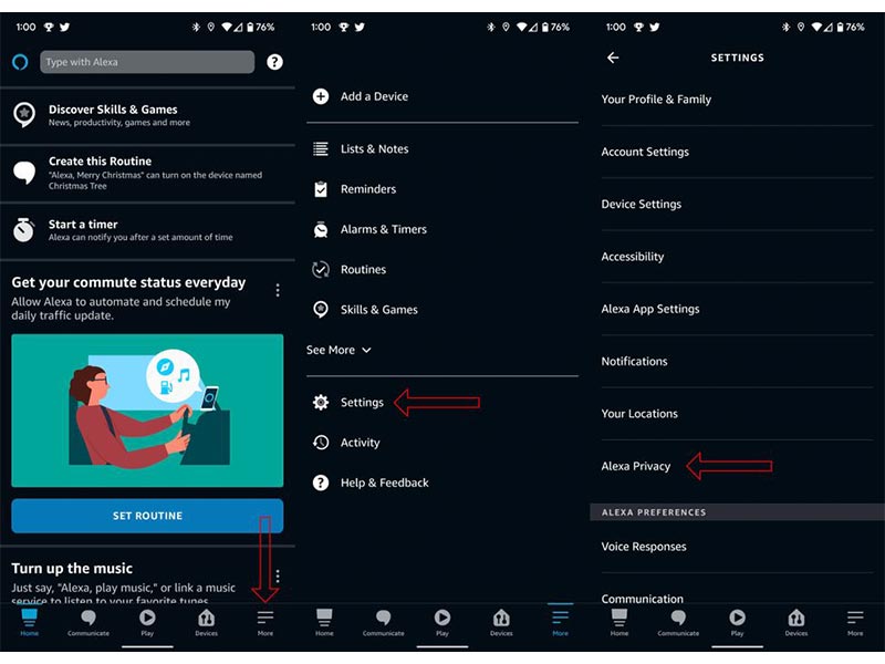 اپلیکیشن Alexa به شما این امکان را می دهد تا از روی گوشی خود اسپیکرهای Echo را مدیریت کنید. این اپلیکیشن با تمام اسپیکرهای این سری شامل مدل های Echo Dot و Echo Show 15 سازگاری دارد و امکاناتی مانند اضافه کردن یک دستگاه اسمارت هوم دیگر یا ایجاد روتین های صوتی را از طریق ضبط صدا به شما می دهد. اگر می خواهید صداهای ضبط شده در این اپلیکیشن را پاک کنید باید مراحل زیر را انجام دهید: