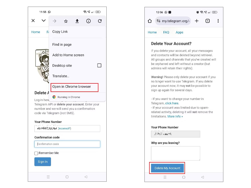 خوب، برویم به سراغ آموزش مراحل حذف فوری اکانت تلگرام!